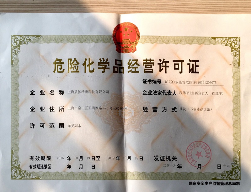 危险化学品经营许可证:沪(金)应急管危经许 [2023] 200125